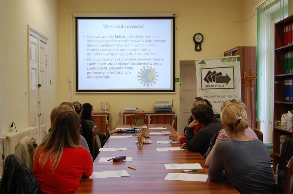 Doradca zawodowy Pani Magdalena Kuźniewska w ramach grupowej informacji zawodowej poprowadziła zajęcia przybliżając tematykę w zakresie kształtowania pozytywnego stosunku do innych kultur, ukazanie korzyści wynikających ze współpracy w międzynarodowym zespole, ułatwienie komunikacji i integracji, zwracając uwagę na otwartość, szacunek, tolerancję i odwagę będącą warunkiem poznania i tworzenia dobrych relacji z członkami innych kultur. W spotkaniu wykorzystano prezentację multimedialną Pani Anny Skuzińskiej z Centrum Informacji i Planowania Kariery Zawodowej w Elblągu pod tytułem „Poznaj mnie a zrozumiesz".