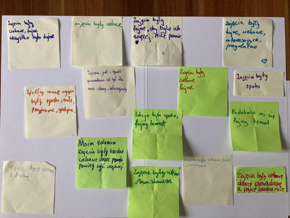 Warsztaty okazały się wartościowym doświadczeniem edukacyjnym. Dzięki interaktywnym metodom pracy uczestnicy nie tylko zdobyli nową wiedzę, ale także mieli okazję przećwiczyć konkretne umiejętności przydatne w przyszłej karierze zawodowej. Spotkanie zakończyło się pozytywnym feedbackiem.
